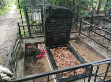 Под надгробье мы залили цемент, выставили плиту по уровню и подправили цветник. Как видно на нижеприведённых фотографиях, памятник был восстановлен. Клиент остался очень доволен проделанной работой.