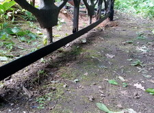 В данном заказе мы столкнулись со следующей проблемой: из металлического ограждения, опоясывавшего периметр участка, была украдена секция. Нижняя же часть ограждения практически полностью прогнила, а потому и остальные элементы узора грозили в скором времени банально выпасть.
