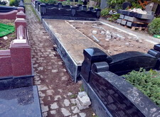 После того, как работа была проведена, клиент посчитал, что в задней части места захоронения требуется дополнительное укрепление. Мы вкрутили пять дополнительных свай, сварили новую сетку и залили ещё одну площадку, которая будет являться основанием для памятников.
